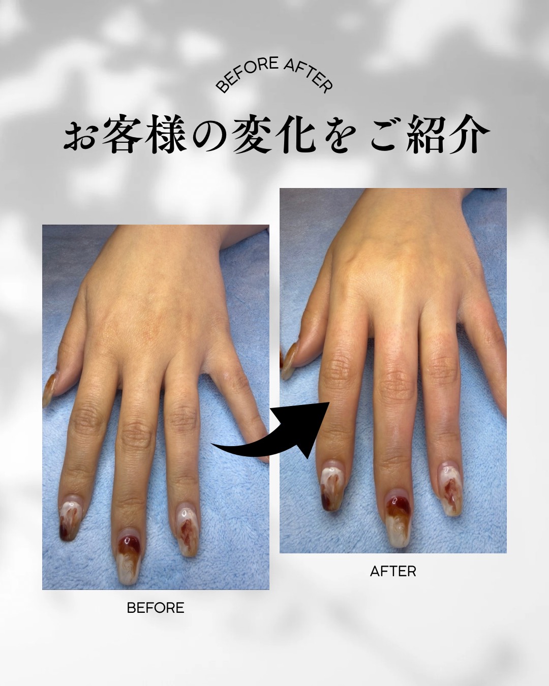 毎日頑張る手だからこそ特別なケアを。施術後は思わず触れたくなるほどなめらかで、ハンドクリームに頼りすぎない健やかな手元を目指します。指先まで美しく整った手は、あなたの印象をより上品に輝かせてくれるはずです。忙しい日常を少しだけ忘れ、心まで満たされる癒しの時間をぜひご体感ください。